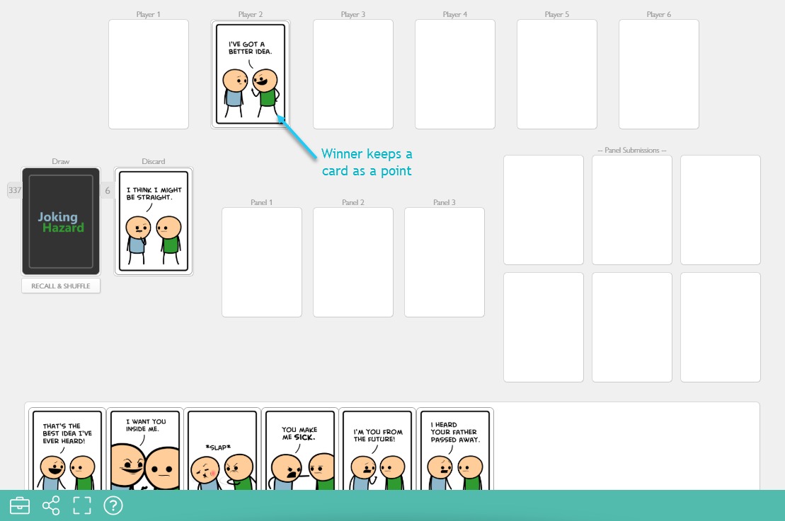 The other players place 1 or 2 cards into the Panel Submissions section to complete the comic.